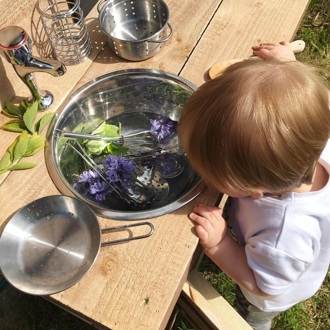 This kitchen is perfect for 4 years plus. The engaging sensory play children partake in while playing with mud allows them to express their creativity while enhancing their fine motor skills. Children practice social skills such as cooperation, negotiation, communication, and sharing as they work together.